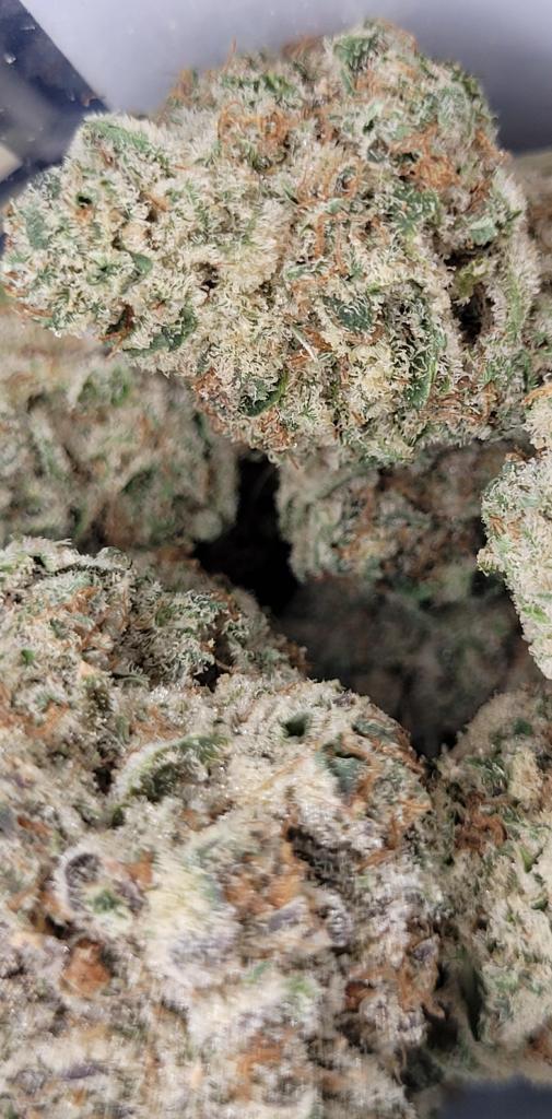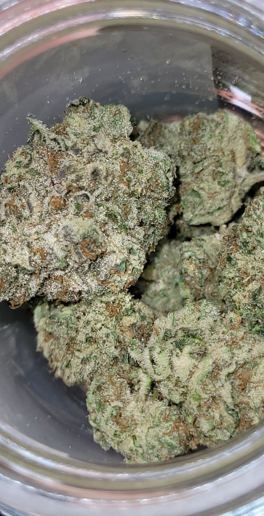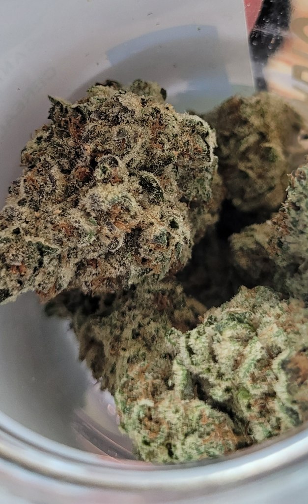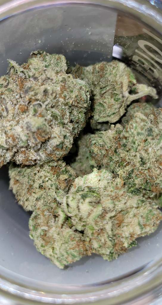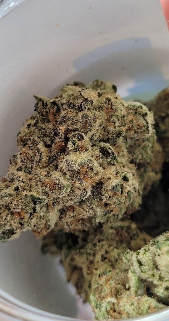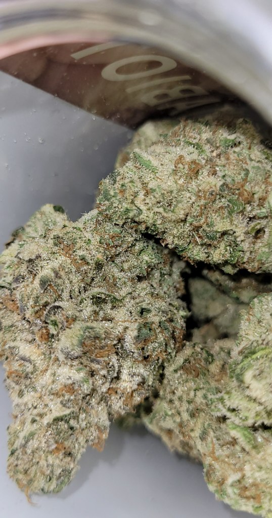 Amazing cure, super sticky, perfect nugs. Nose is mostly cream, with some hints of dank spice. Feels like an indica in the sense that it made me spacey, zoned out and forgetful, just pure happy and stoney. But there’s very little couch-lock or tiredness for me, I’m still feeling motivated enough to go do the dishes and bump some music, lol.