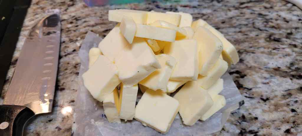 4. While your flower is in the oven, get your butter separated and cut it in to smaller pieces. You want it all to fit in the same jar easily.