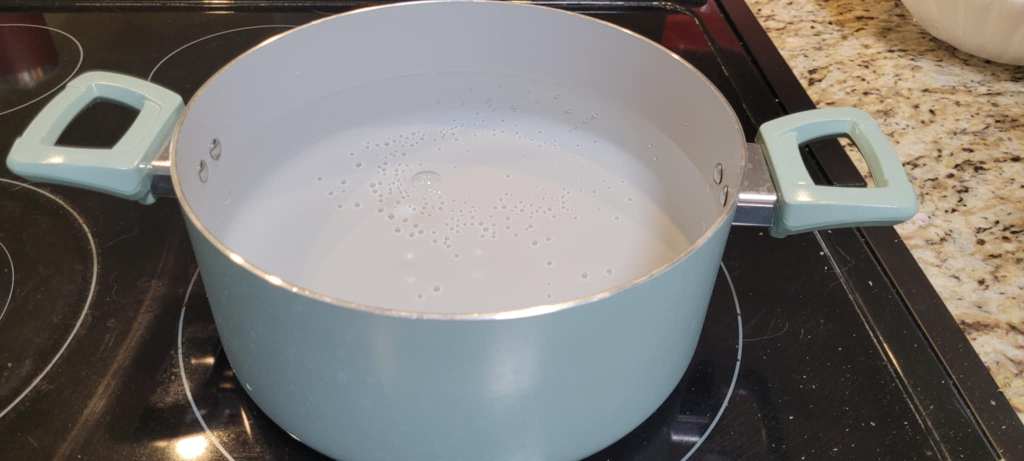 5. Also while flower is still in the oven, fill your pot with enough water to almost submerge your jar, and put it on the stove on medium heat. You want the water to be between 160°f and 180°f. This is where a digital thermometer becomes very useful! You can go without and just try to keep it just below simmering, but your chances of success go way up if you know the exact temp you’re working with.