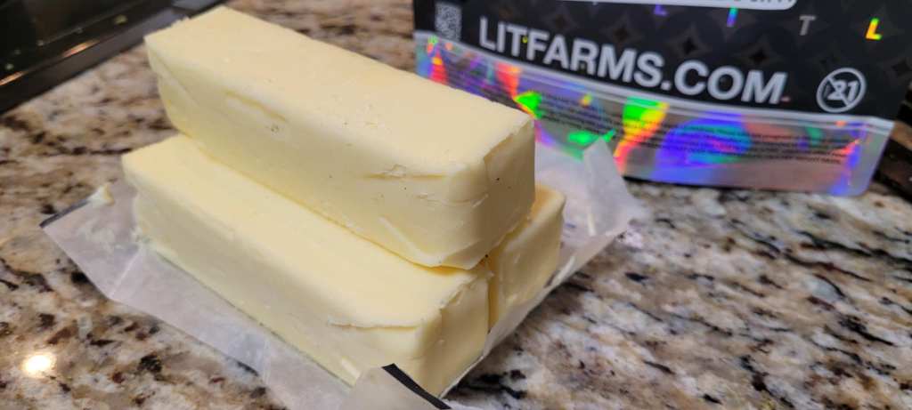My favorite flower to butter ratio is 7 grams of flower to 1 stick (113 grams) of butter. If I want a stronger product, I’ll use 10 grams per stick, and if I’m baking for a more inexperienced crowd, I’ll just use 3.5 grams per stick.